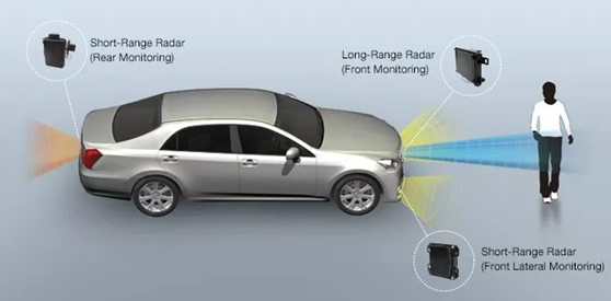 以車載毫米波雷達為例,雷達通過天線向外發(fā)射毫米波,接收目標反射信號,經后方處理后快速準確地獲取汽車車身周圍的物理環(huán)境信息(如汽車與其他物體之間的相對距離、相對速度、角度、運動方向等),然后根據所探知的物體信息進行目標追蹤和識別分類,進而結合車身動態(tài)信息進行數據融合,最終通過中央處理單元(ECU)進行智能處理。經合理決策后,以聲、光及觸覺等多種方式告知或警告駕駛員,或及時對汽車做出主動干預,從而保證駕駛過程的安全性和舒適性,減少事故發(fā)生幾率。